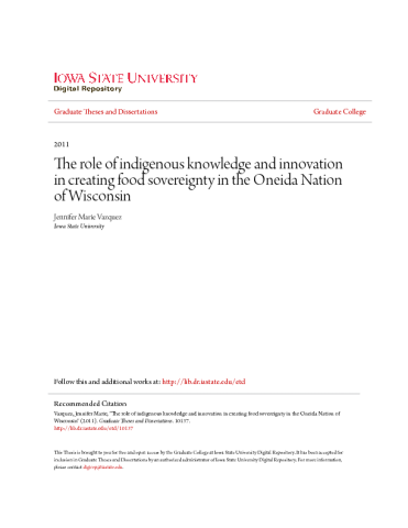 The role of indigenous knowledge and innovation in creating food sovereignty in the Oneida Nation of Wisconsin